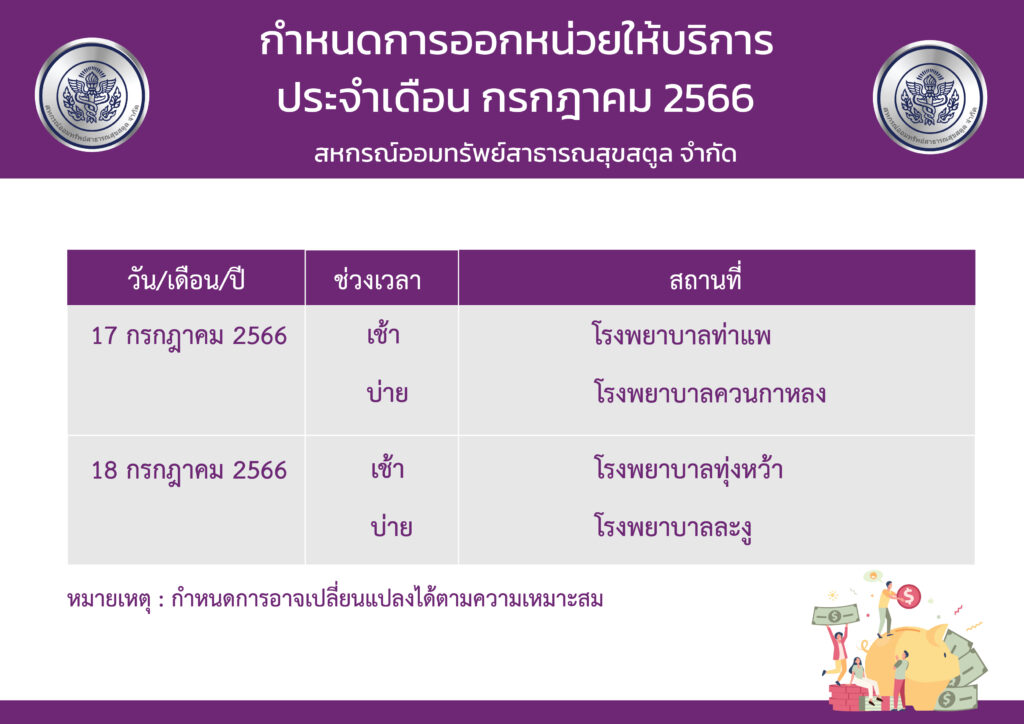 กำหนดการออกหน่วยให้บริการสมาชิกประจำเดือน กรกฎาคม 2566