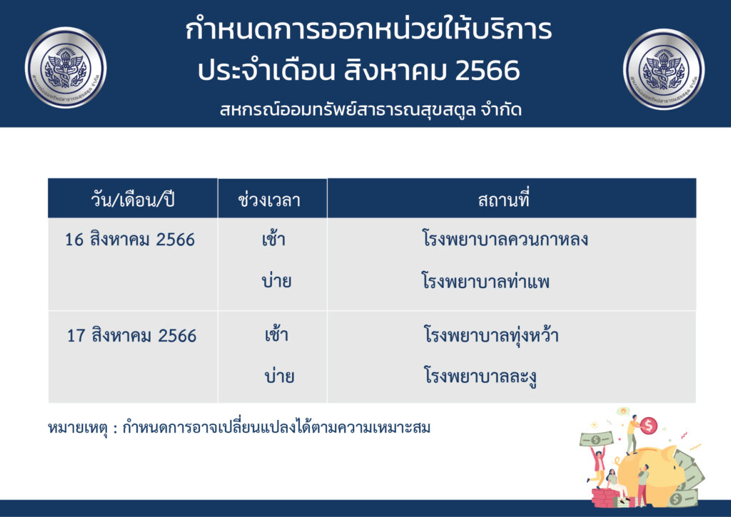 กำหนดการออกหน่วยให้บริการสมาชิกประจำเดือน สิงหาคม 2566