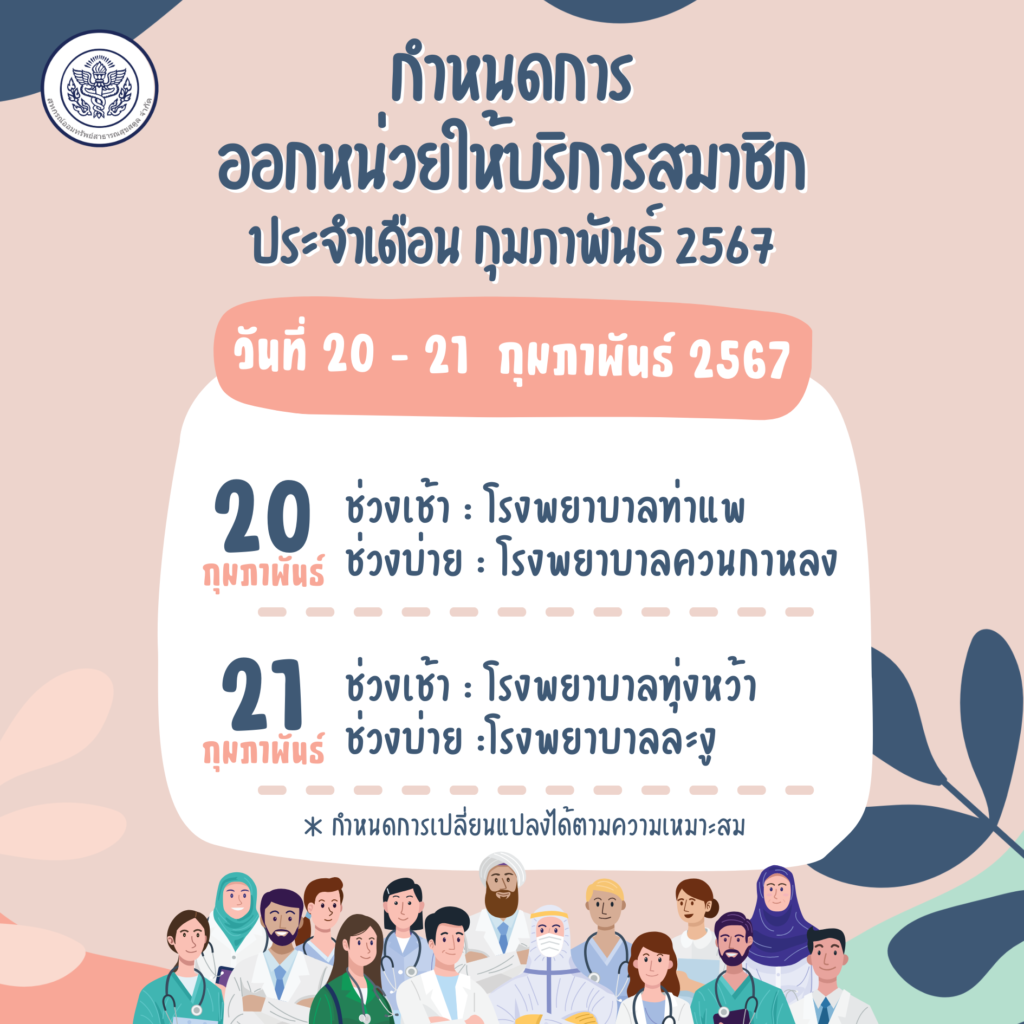 กำหนดการออกหน่วยให้บริการ ประจำเดือน กุมภาพันธ์ 2567