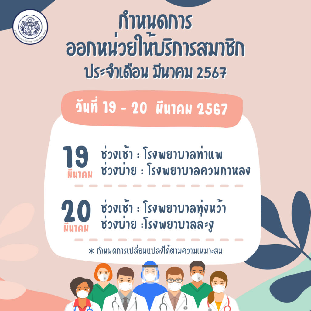 กำหนดการออกหน่วยให้บริการสมาชิก ประจำเดือน มีนาคม 2567