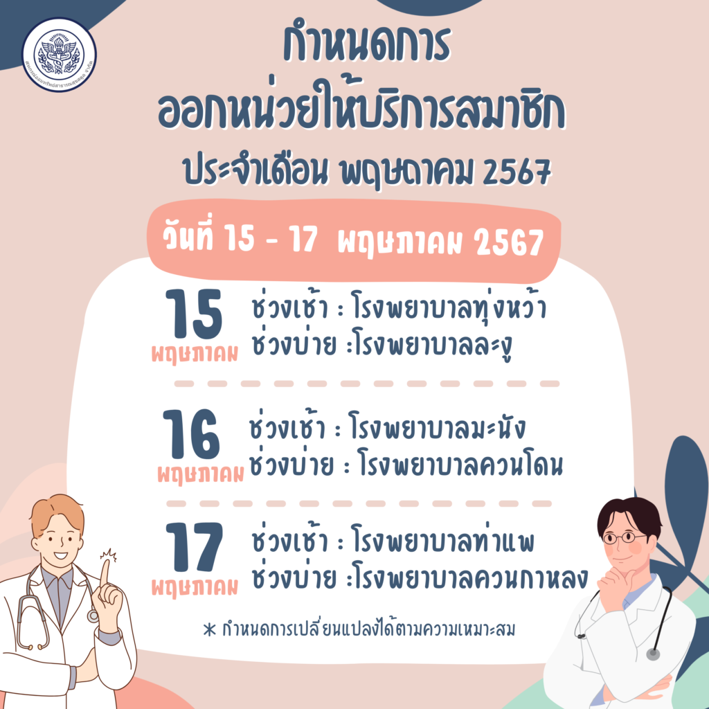 กำหนดการออกหน่วยให้บริการสมาชิก ประจำเดือน พฤษภาคม 2567