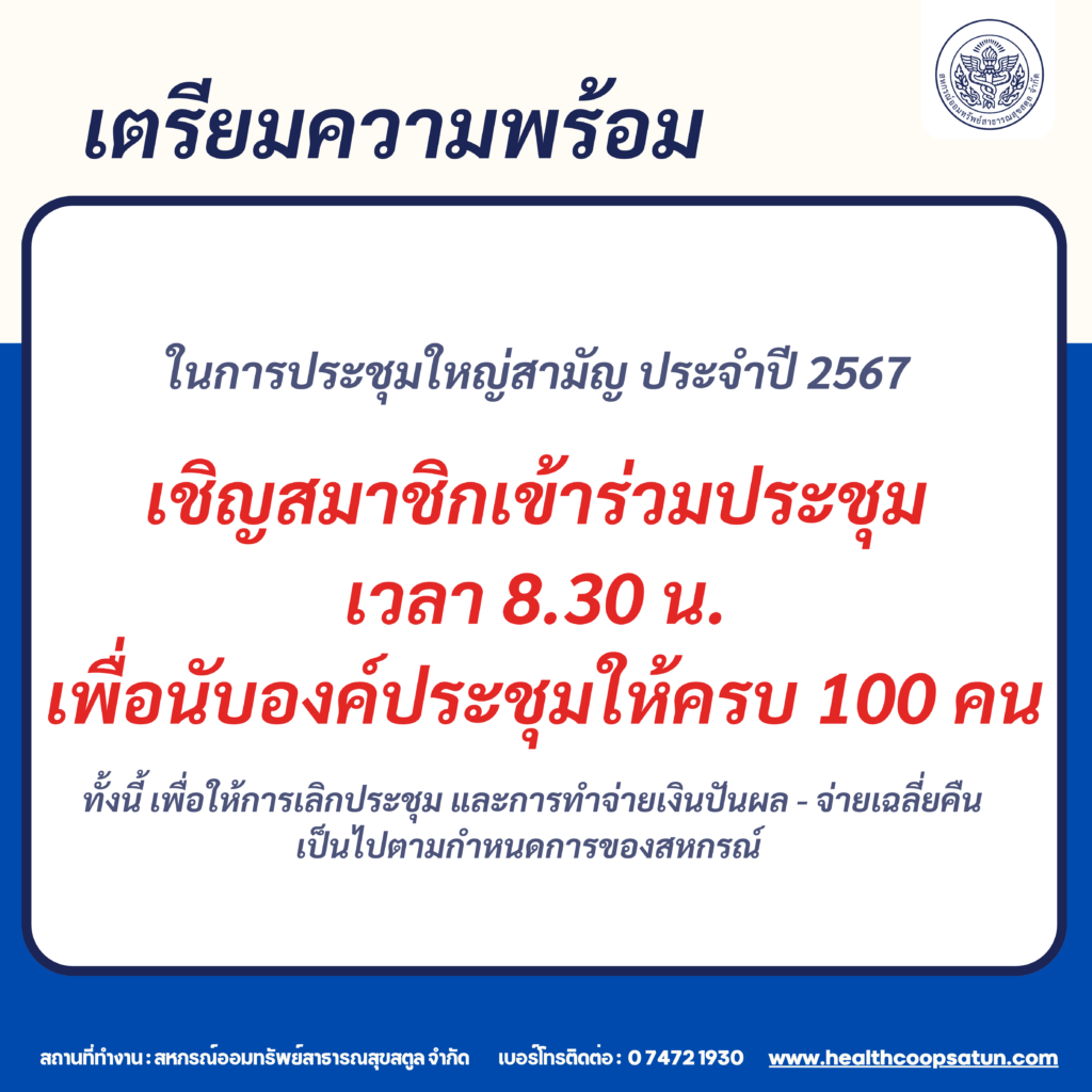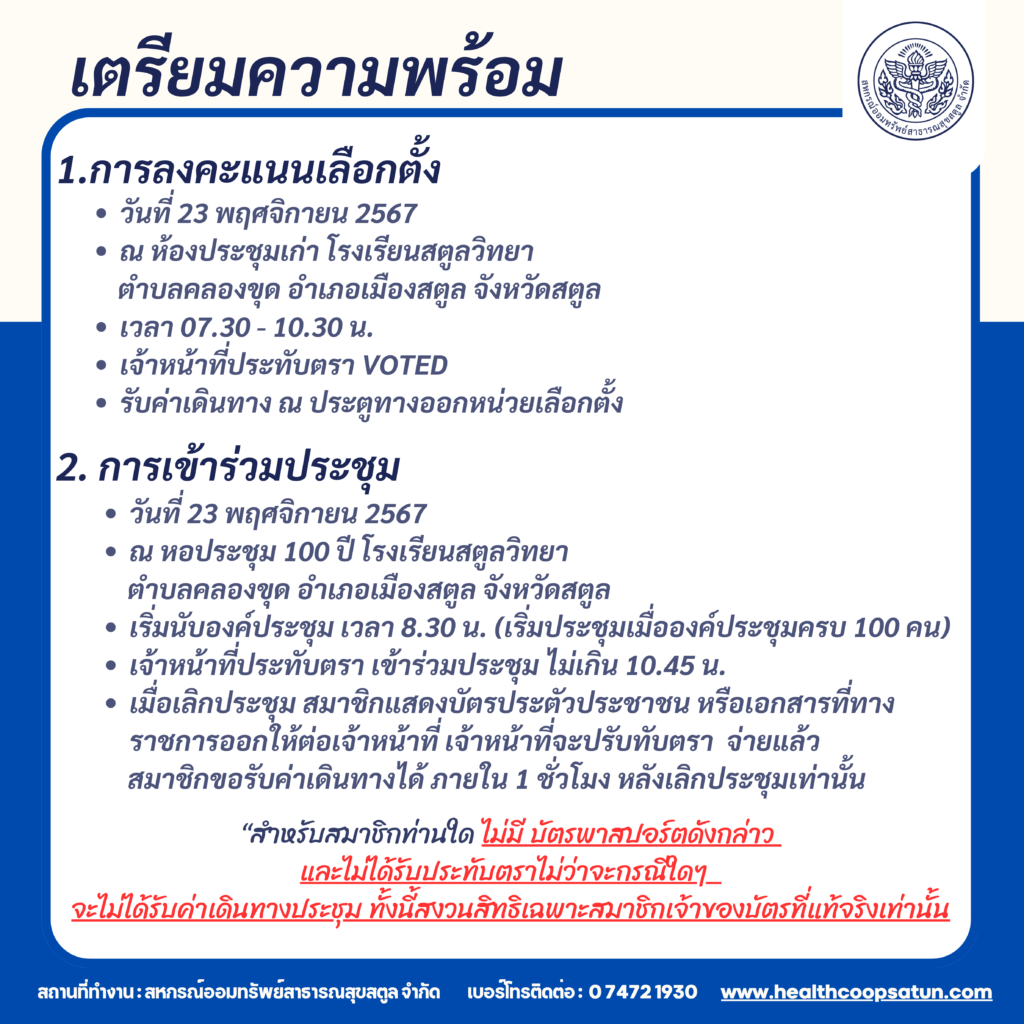 ขอความร่วมมือ และเตรียมความพร้อมในการเลือกตั้ง และประชุมใหญ่สามัญ ประจำปี 2567