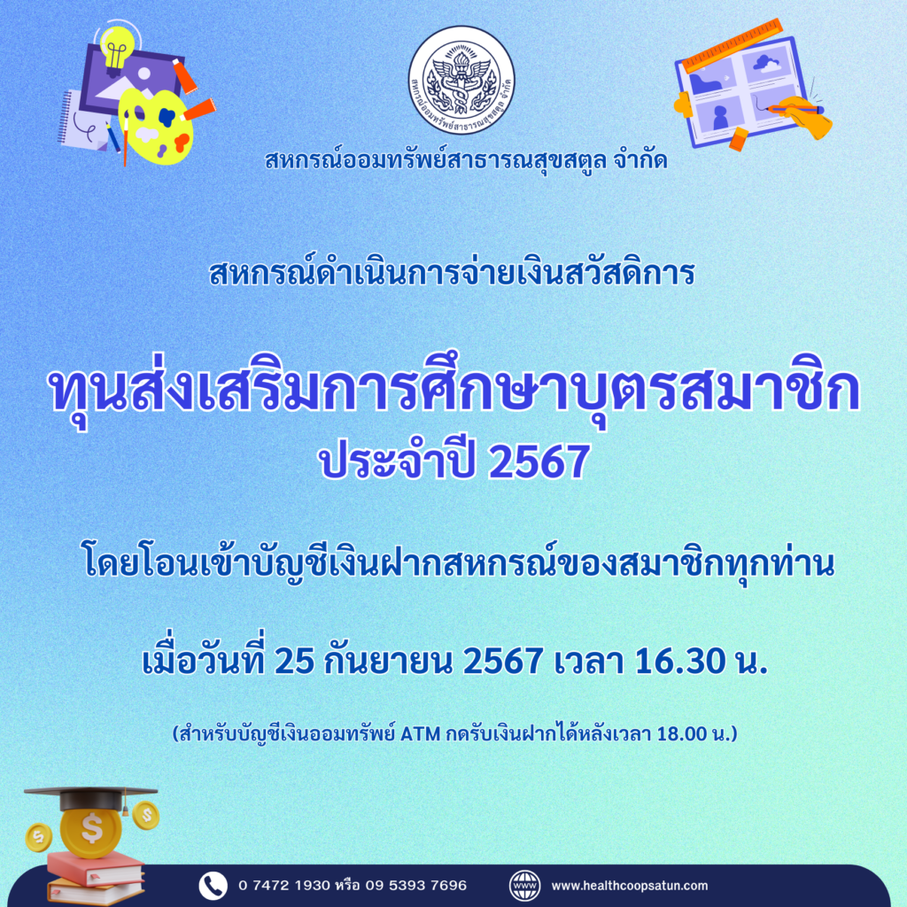จ่ายเงินทุนส่งเสริมการศึกษาบุตรสมาชิก ประจำปี 2567