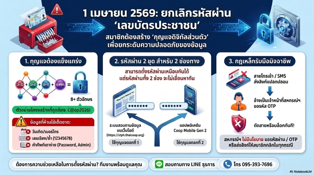 ตั้งแต่วันที่ 1 เมษายน 2569 เป็นต้นไป ยกเลิกรหัสผ่านด้วยเลขที่บัตรประชาชน