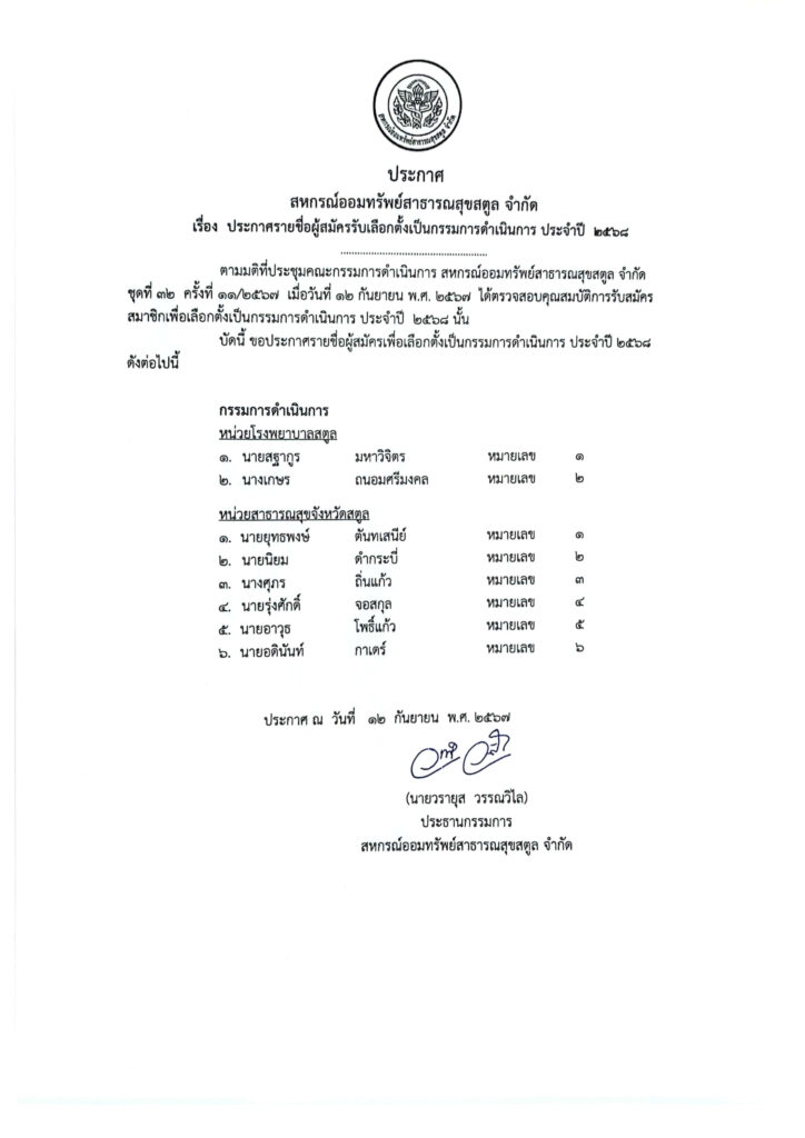 ประกาศรายชื่อผู้สมัครรับเลือกตั้งเป็นกรรมการดำเนินการ ประจำปี 2568