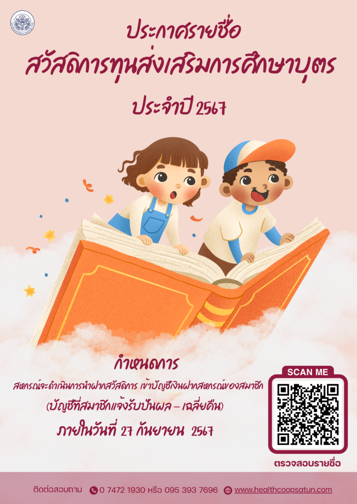 ประกาศรายชื่อสวัสดิการทุนส่งเสริมการศึกษาบุตร ประจำปี 2567