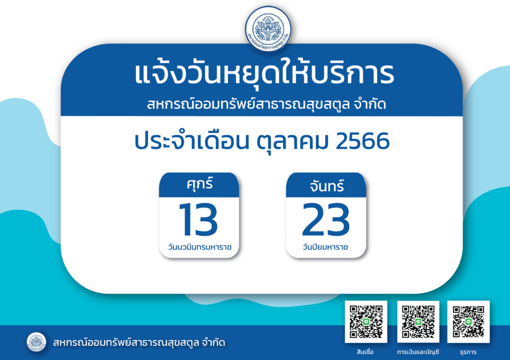 ประกาศวันหยุดให้บริการ ประจำเดือน ตุลาคม 2566