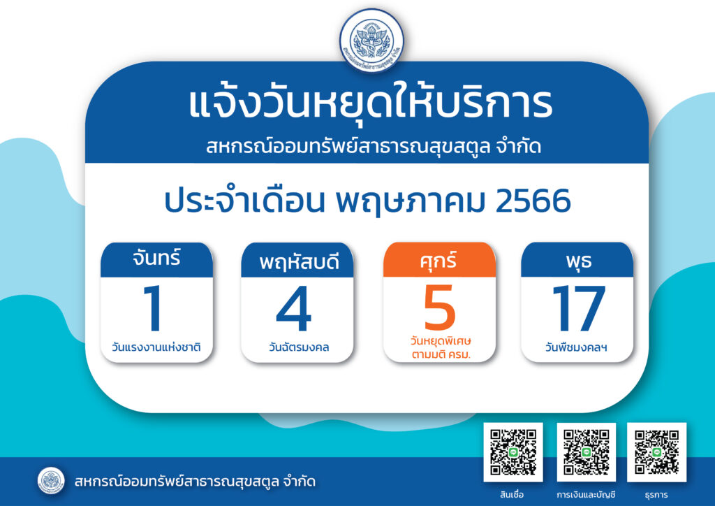 ประกาศหยุดให้บริการประจำ เดือนพฤษภาคม 2566