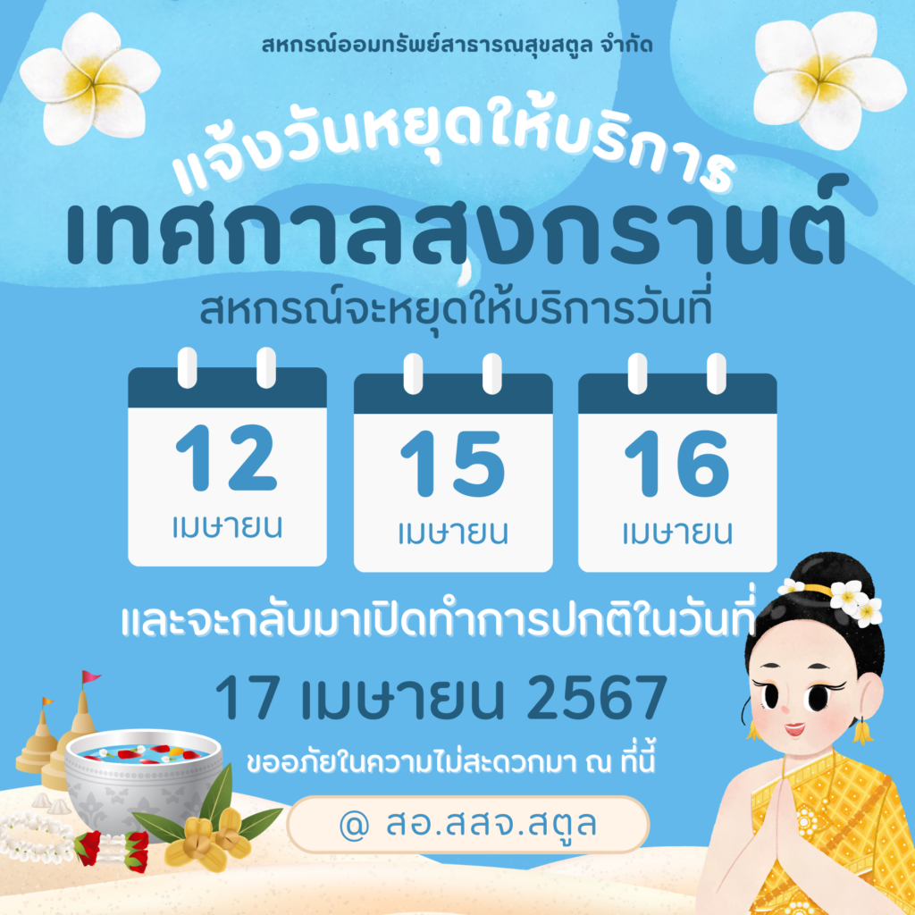 ประกาศหยุดให้บริการเทศกาลสงกรานต์ 2567
