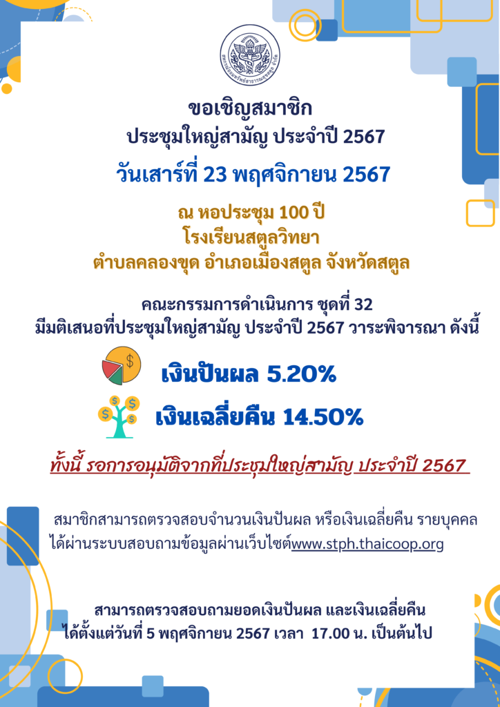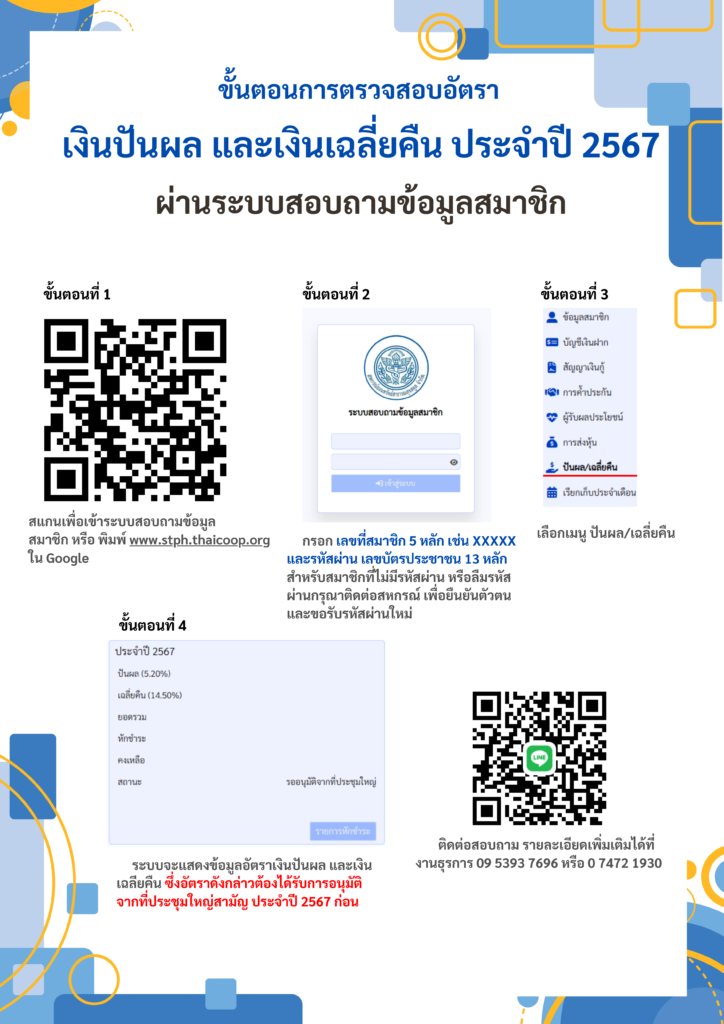 ประกาศอัตราเงินปันผล – เงินเฉลี่ยคืน ประจำปี 2567