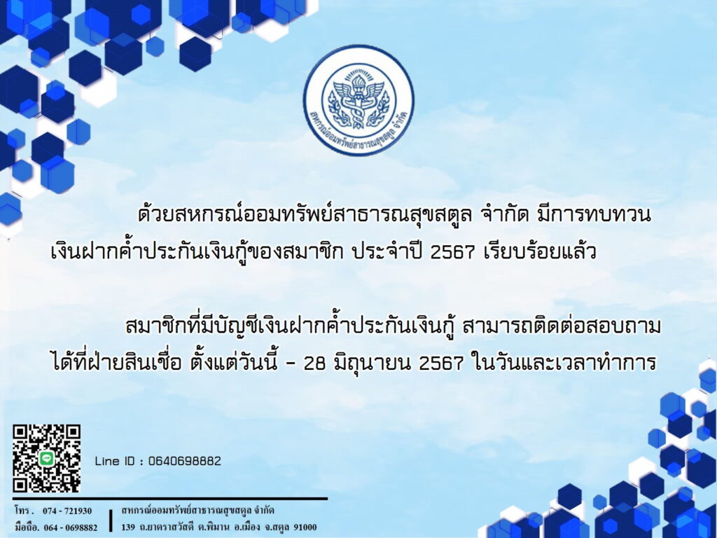 ประกาศ เรื่องการทบทวนเงินค้ำประกันเงินกู้ ประจำปี 2567