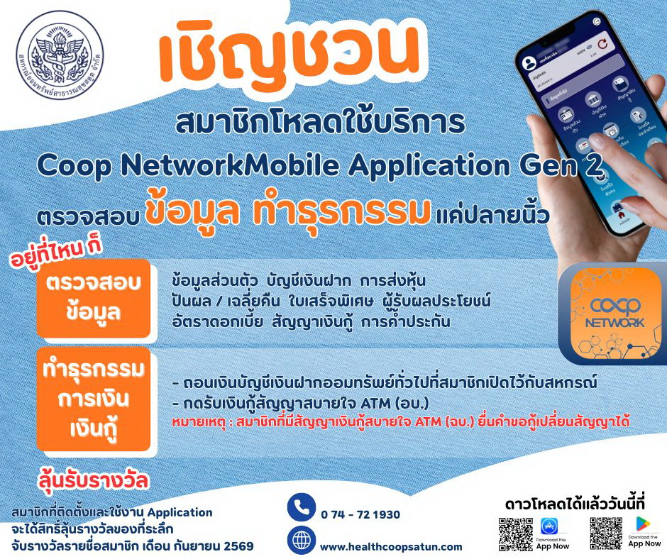 เชิญชวนสมาชิกใช้บริการ Coop Network Mobile Application Gen 2