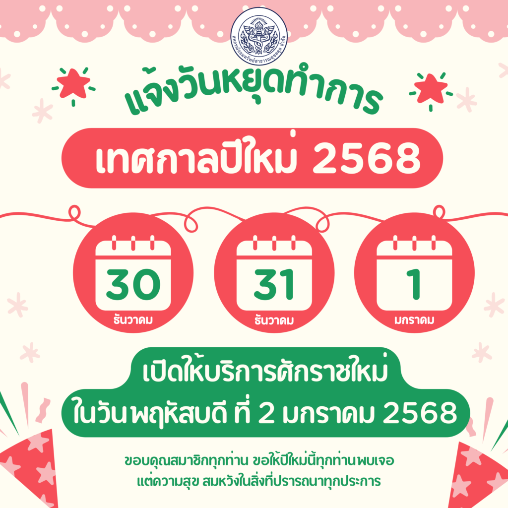 แจ้งวันหยุดทำการเทศกาลปีใหม่ 2568