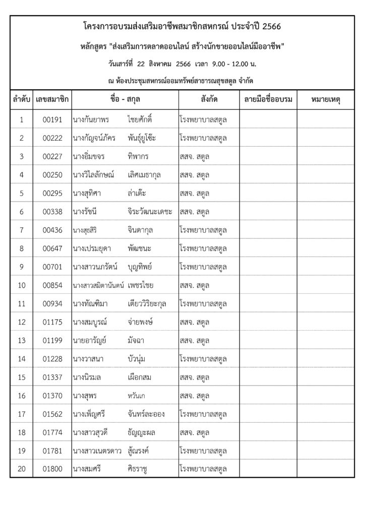 วันเสาร์ที่ 22 สิงหาคม 2566 เวลา 9.00 – 12.00 น. ณ ห้องประชุมสหกรณ์ออมทรัพย์สาธารณสุขสตูล จำกัด