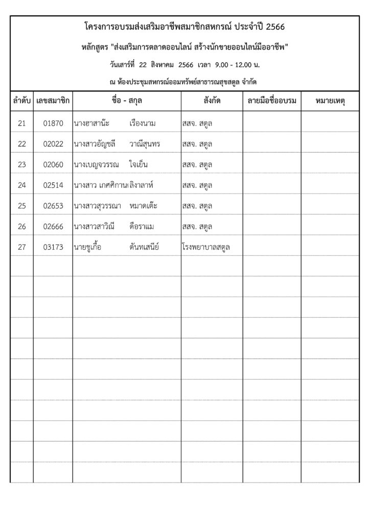ประกาศรายชื่อโครงการอบรมส่งเสริมอาชีพสมาชิกสหกรณ์ ประจำปี 2566 หลักสูตร “ส่งเสริมการตลาดออนไลน์ สร้างนักขายออนไลน์มืออาชีพ”