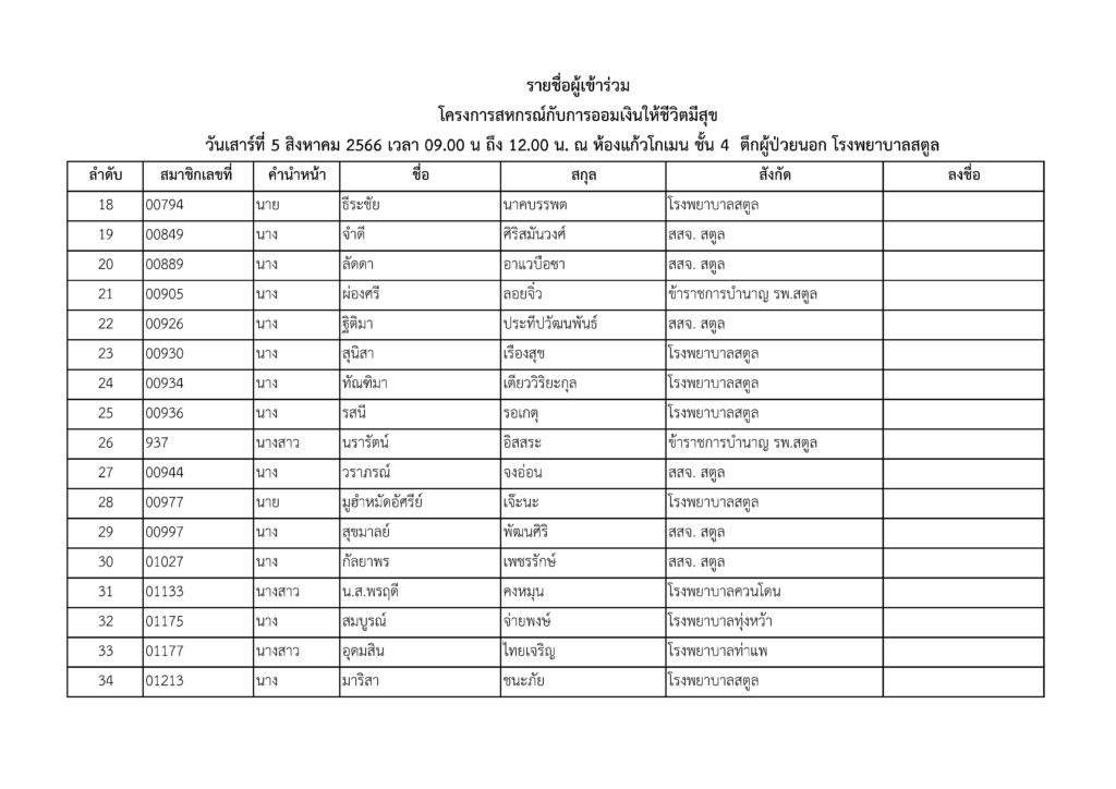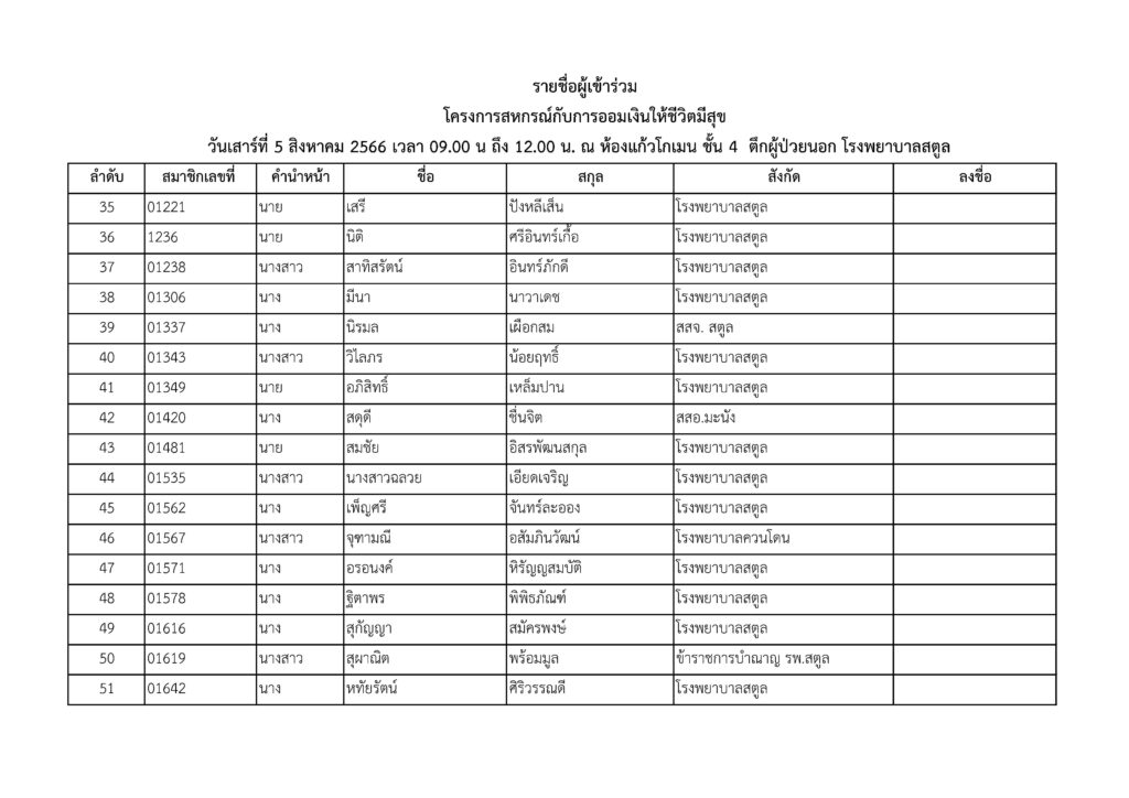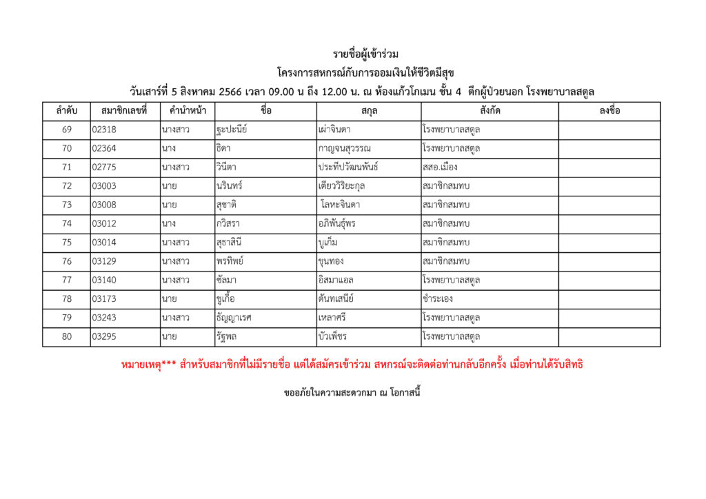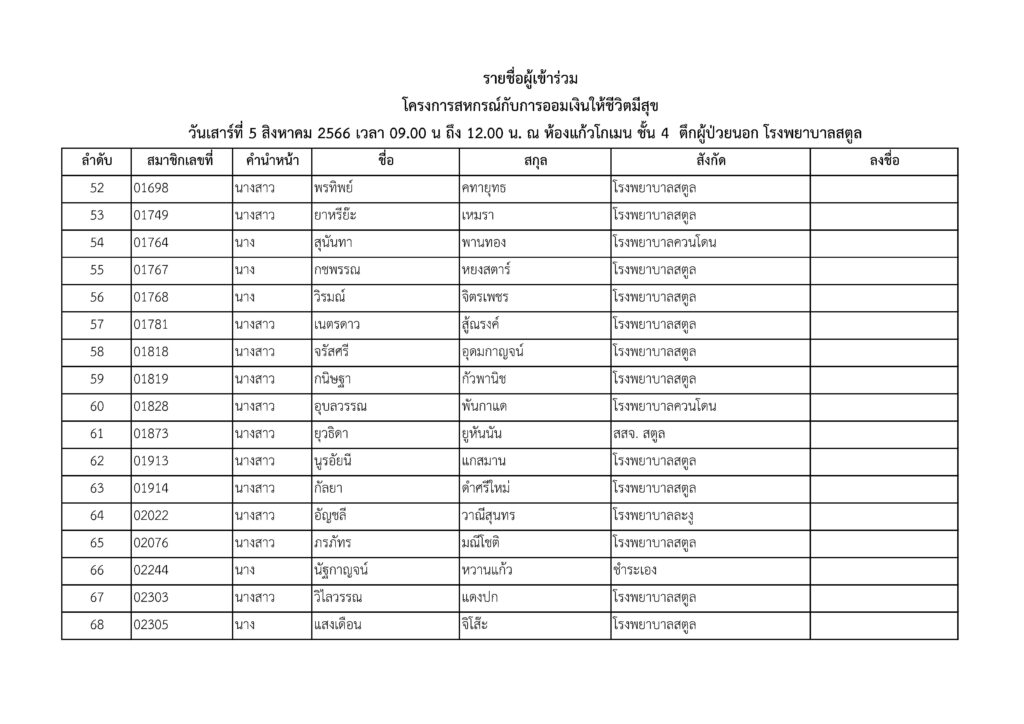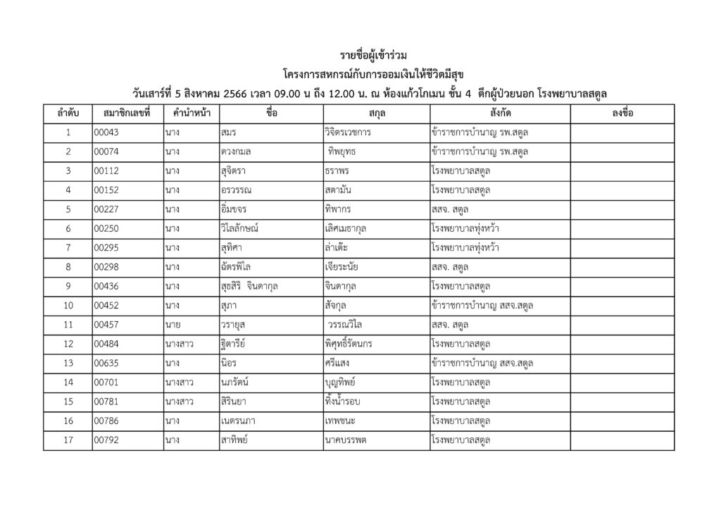 วันเสาร์ที่ 5 สิงหาคม 2566 เวลา 09.00 น ถึง 12.00 น. ณ ห้องแก้วโกเมน ชั้น 4 ตึกผู้ป่วยนอก โรงพยาบาลสตูล อำเภอเมืองสตูล จังหวัดสตูล