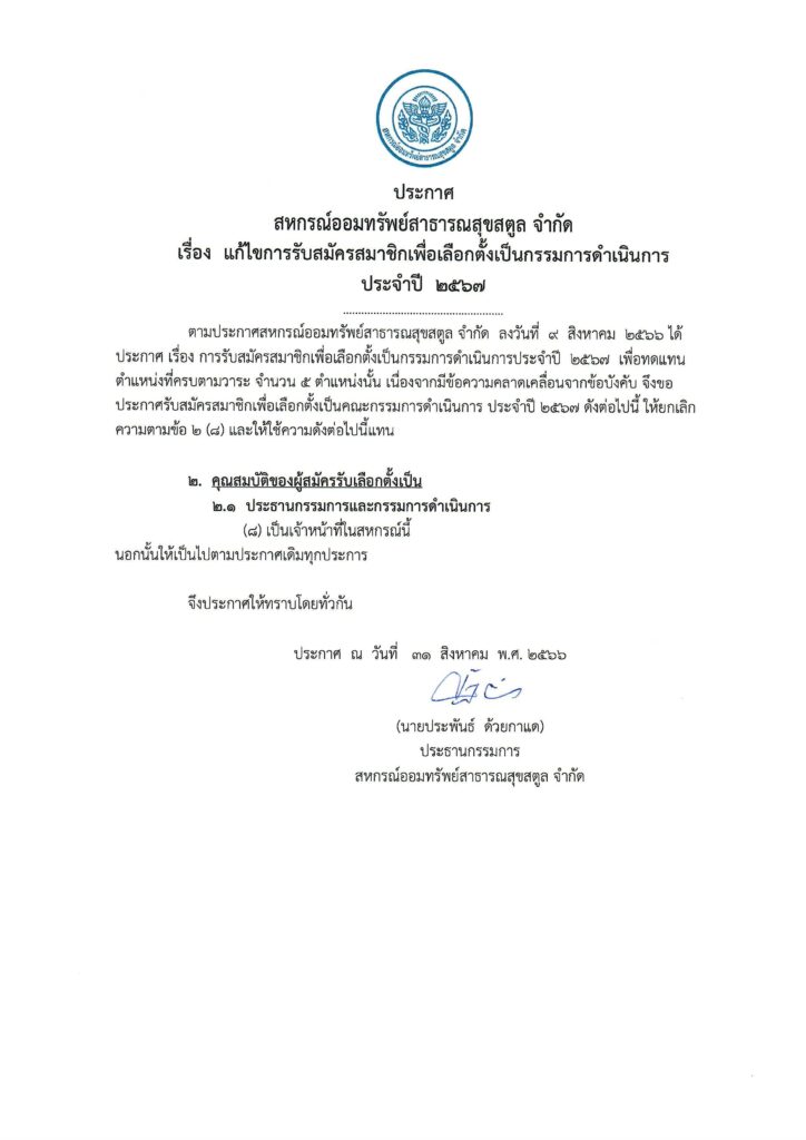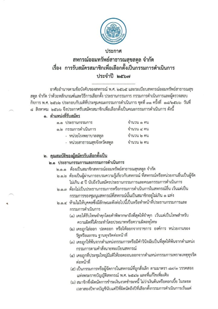ประกาศ เรื่องรับสมัครสมาชิกเพื่อเลือกตั้งเป็นกรรมการดำเนินการ ประจำปี 2567